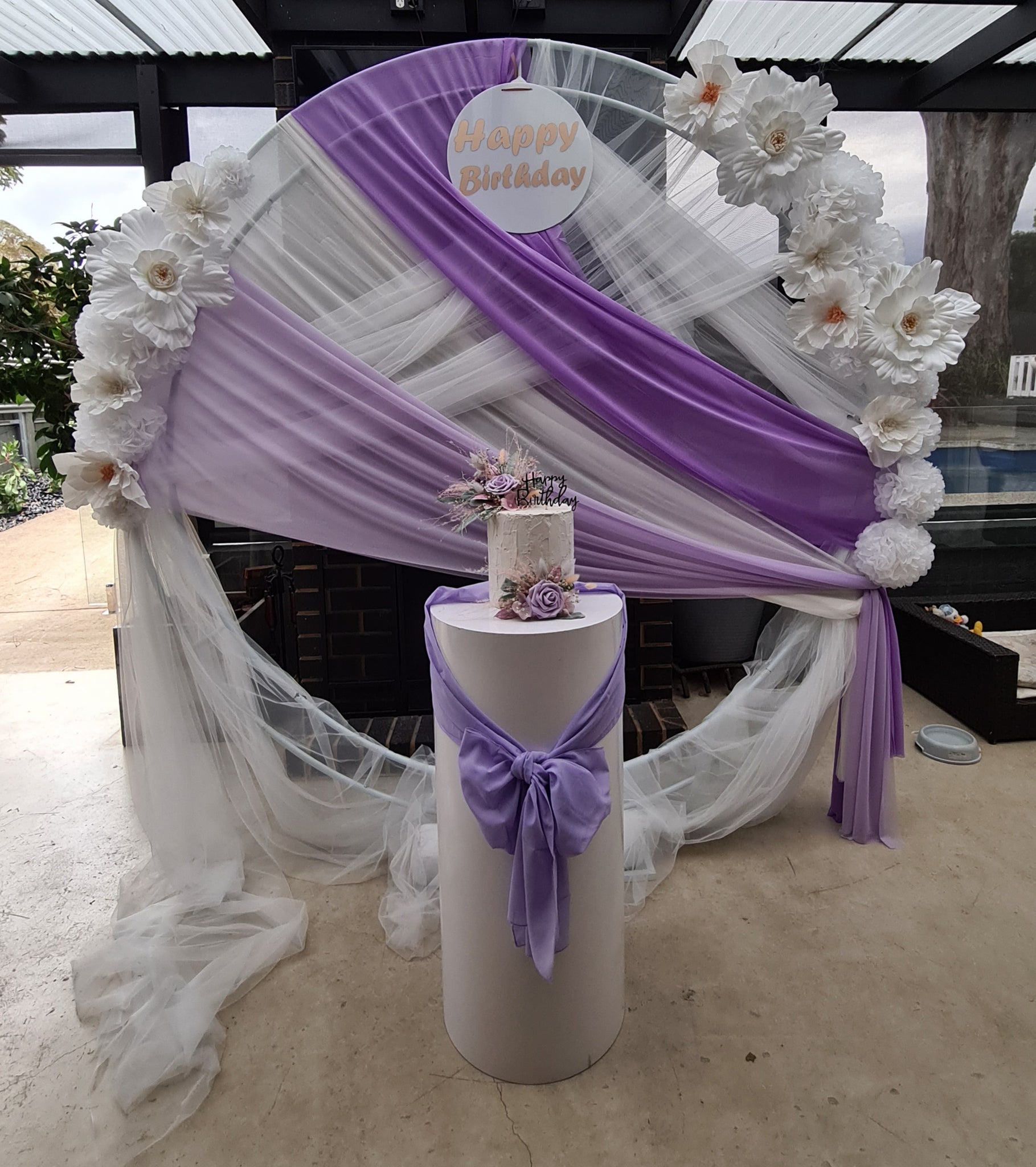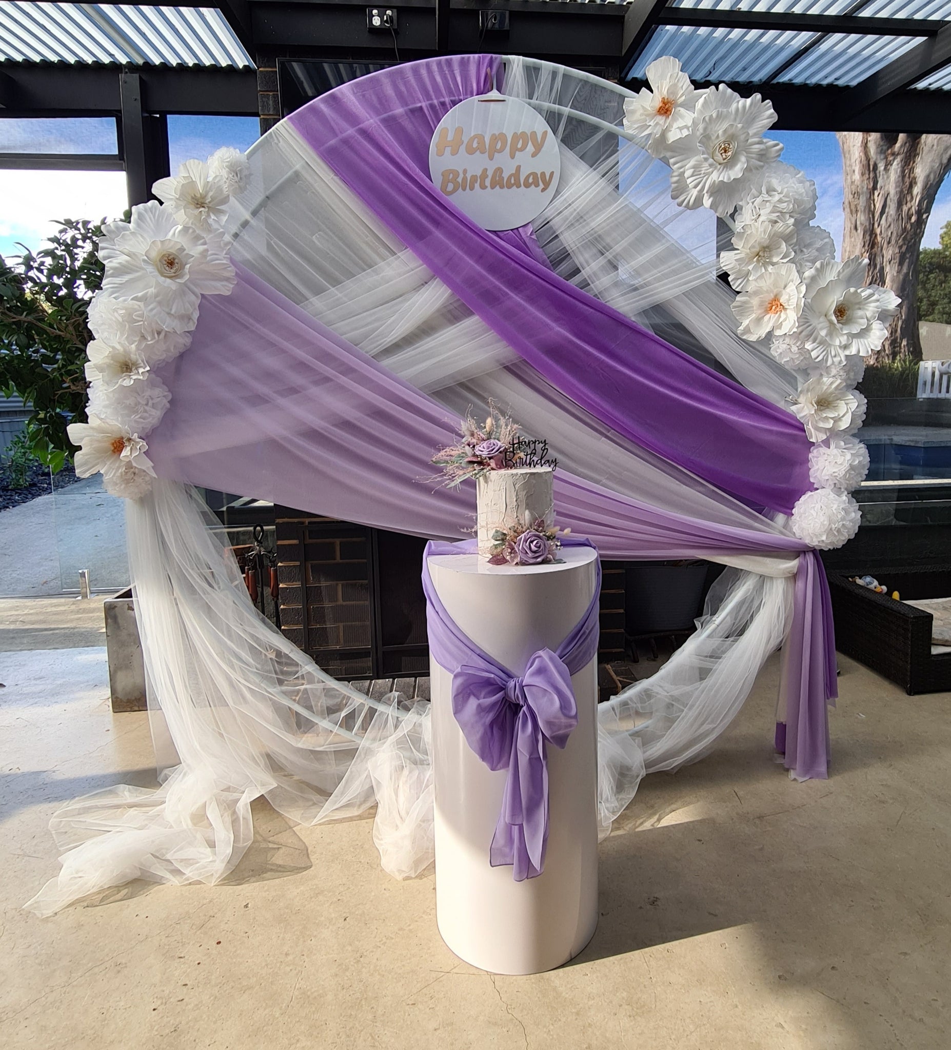 - White & purple drapes / curtains / tulles – 4 pcs free of charge