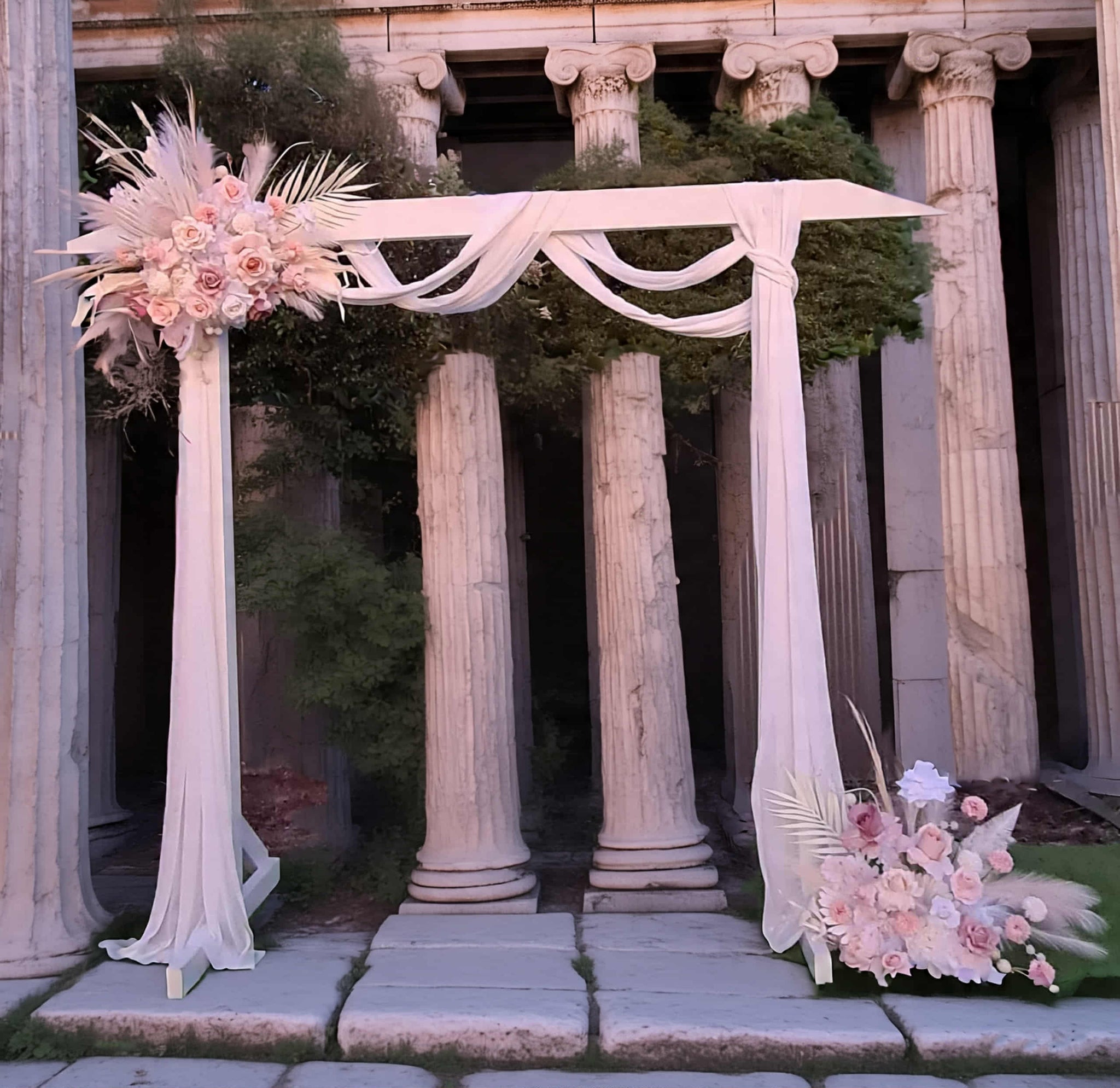 White wood arbour & 2 x Boho blush romantic flowers